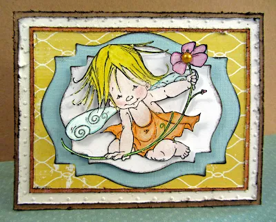 I used Fairy Sweet for this Cute card and watercolored it using Faber-Castell Aquarelle Pencils and Gelatos!! =) I LOVE the way it turned out!! I then fussy cut the image out and added it to the front of my card!!